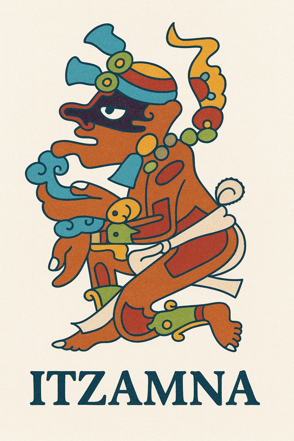Itzamna | Creator god, god of wisdom and writing | Sky, creation, medicine |